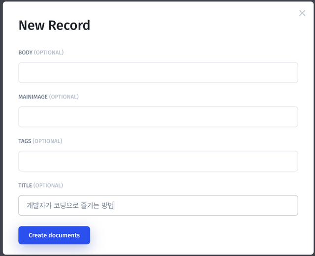 Now, press the New Record button in Jetadmin, and enter the title of the blog you want to create.